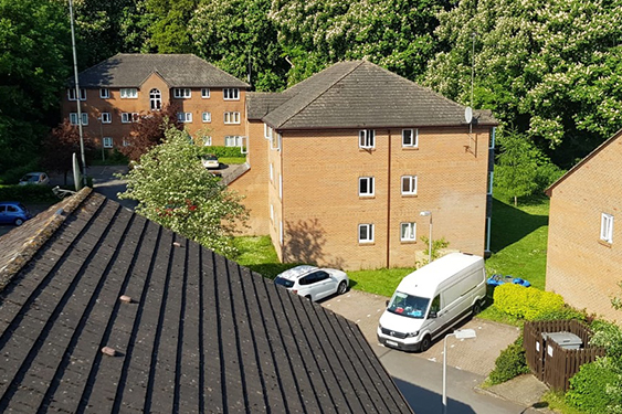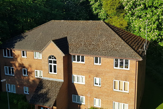 The full block was cleaned efficiently and safely with no need for scaffolding. Residents were unaffected and the roof lifespan was extended.
